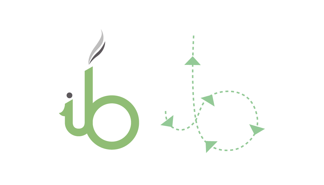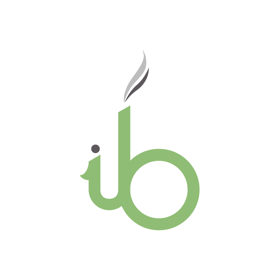El logotipo de Interacciones Biológicas S.L Representa una caldera en la que, desde la letra "I" se inicia el cclo de energía hasta generar el calor, que sale por la letra "B". Se eligió el verde ecológico para reforzar el caracter bio.